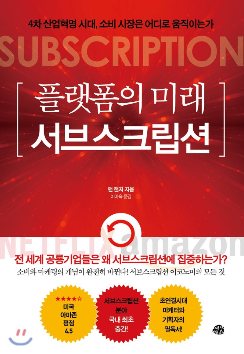 이 책에서 언급된 가입형 상품들을 보아도 유사하다. 넷플릭스, 아마존, MS Office, 이동통신, 신문, 지역 YMCA, 클라우드, 박스 서비스(쥬스, 간편식,화장품, 등), 인력채용 서비스, 의료진단, 심리상담, 차량공유 등이 가입형 서비스의 사례로 이야기되고 있다. 대부분이 디지털 상품이고 미국이 한국보다 약간은 앞서나가는 듯한 모습은 의료나 상담이 가입형으로 나타나고 있다는 사실이다.